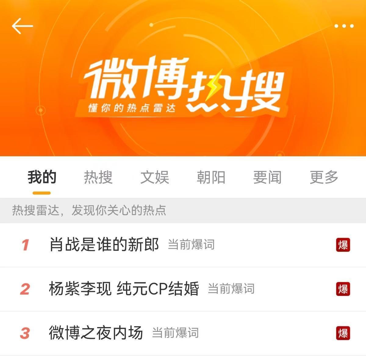我们可以发现,微博之夜的热度非常高,已经爆多个热搜,如:“微博之夜 红毯”“杨紫李现纯元CP结婚”“肖战谁是新郎”“微博之夜内场”等等,从这些热搜话题上看,我们就可以知道微博之夜有多受关注。